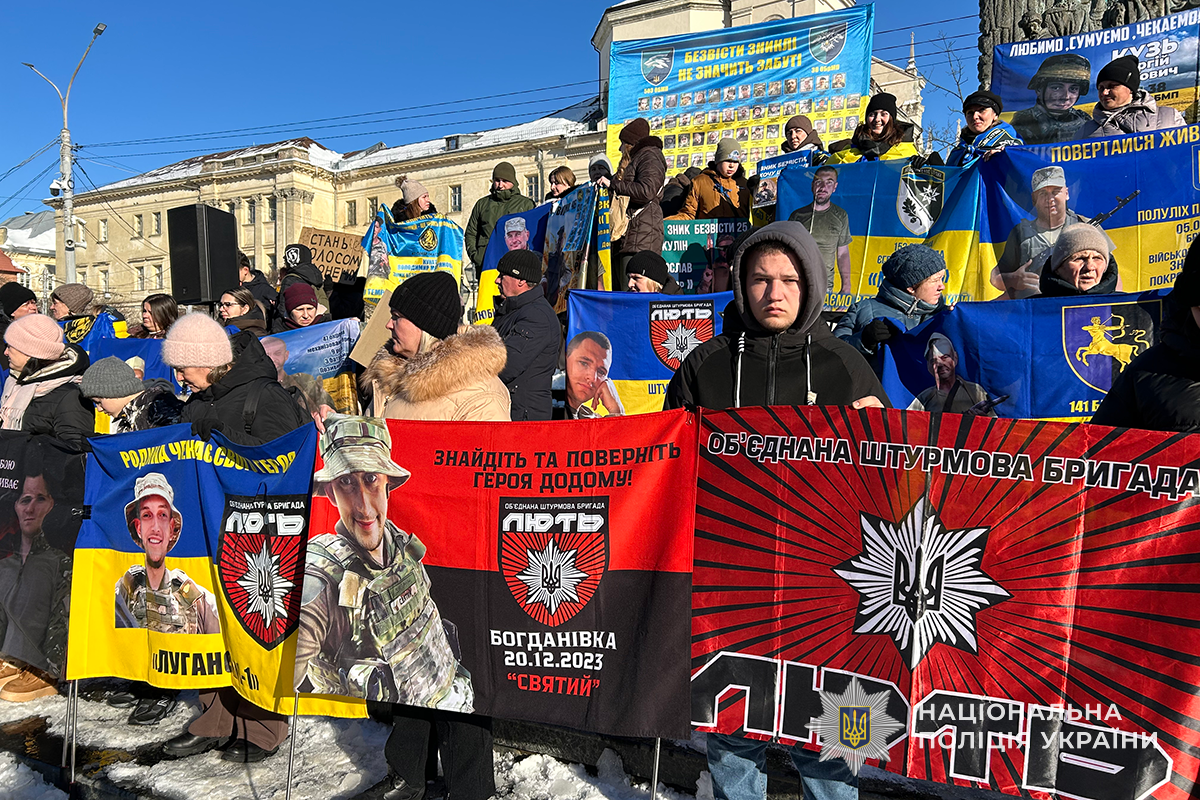 До акції долучилися представники ветеранського простору «Незламні духом» та родини поліцейських із Тернопільщини. Їхні рідні стали до лав оборони держави у складі бригади "Лють" та стрілецьких батальйонів поліції. На жаль, доля багатьох із них досі невідома - їхні імена звучать із болючим формулюванням "зник безвісти".