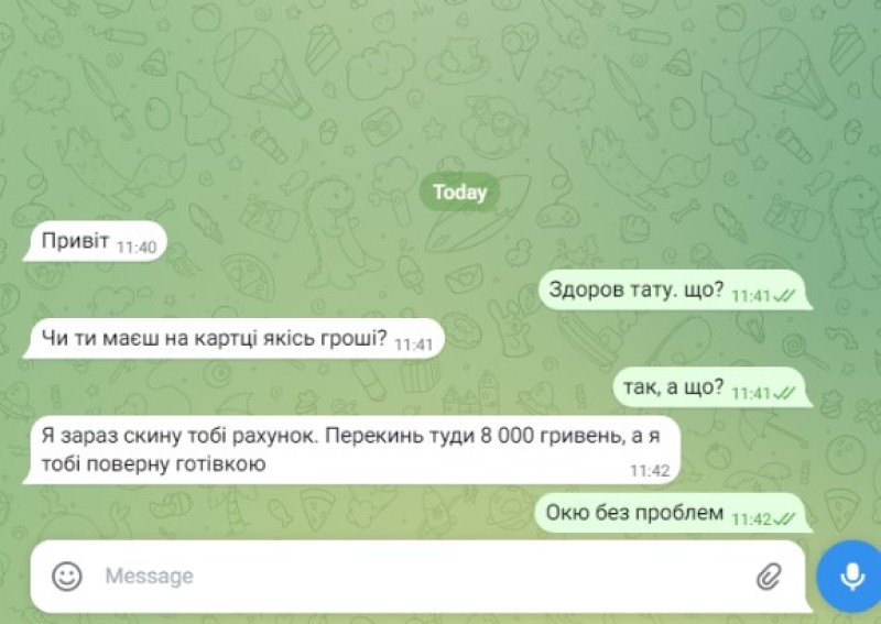 Згодом, так званий «родич», знову почав просити гроші і лише після цього хлопець зателефонував до батька, котрий повідомив, що ніяких повідомлень не надсилав, а його профіль зламали.