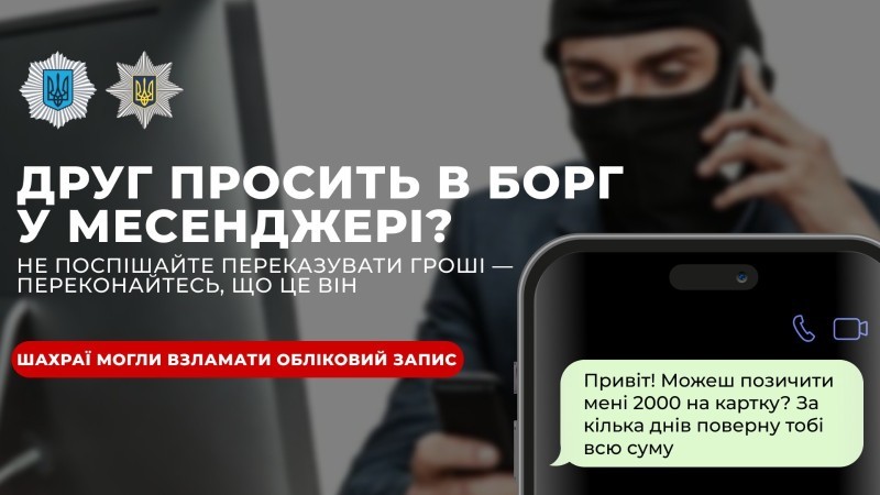 До працівників Тернопільського районного управління поліції звернулася місцева мешканка. Жінка повідомила, що в Telegram отримала повідомлення від свого брата, в якому той просив терміново позичити гроші. Враховуючи, що вони часто спілкуються в цьому месенджері, вона нічого не запідозрила та переказала понад 22 000 гривень на вказаний рахунок.