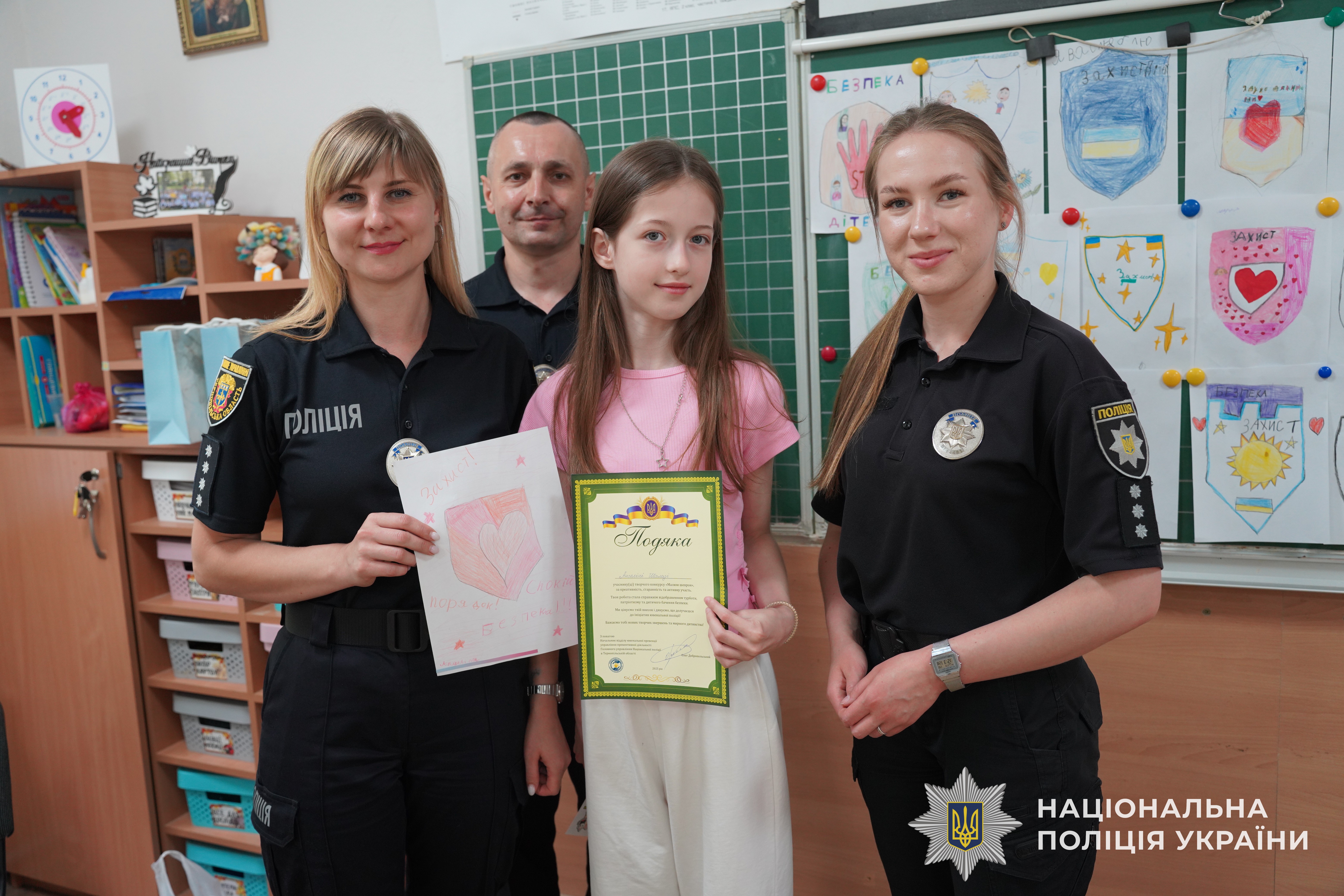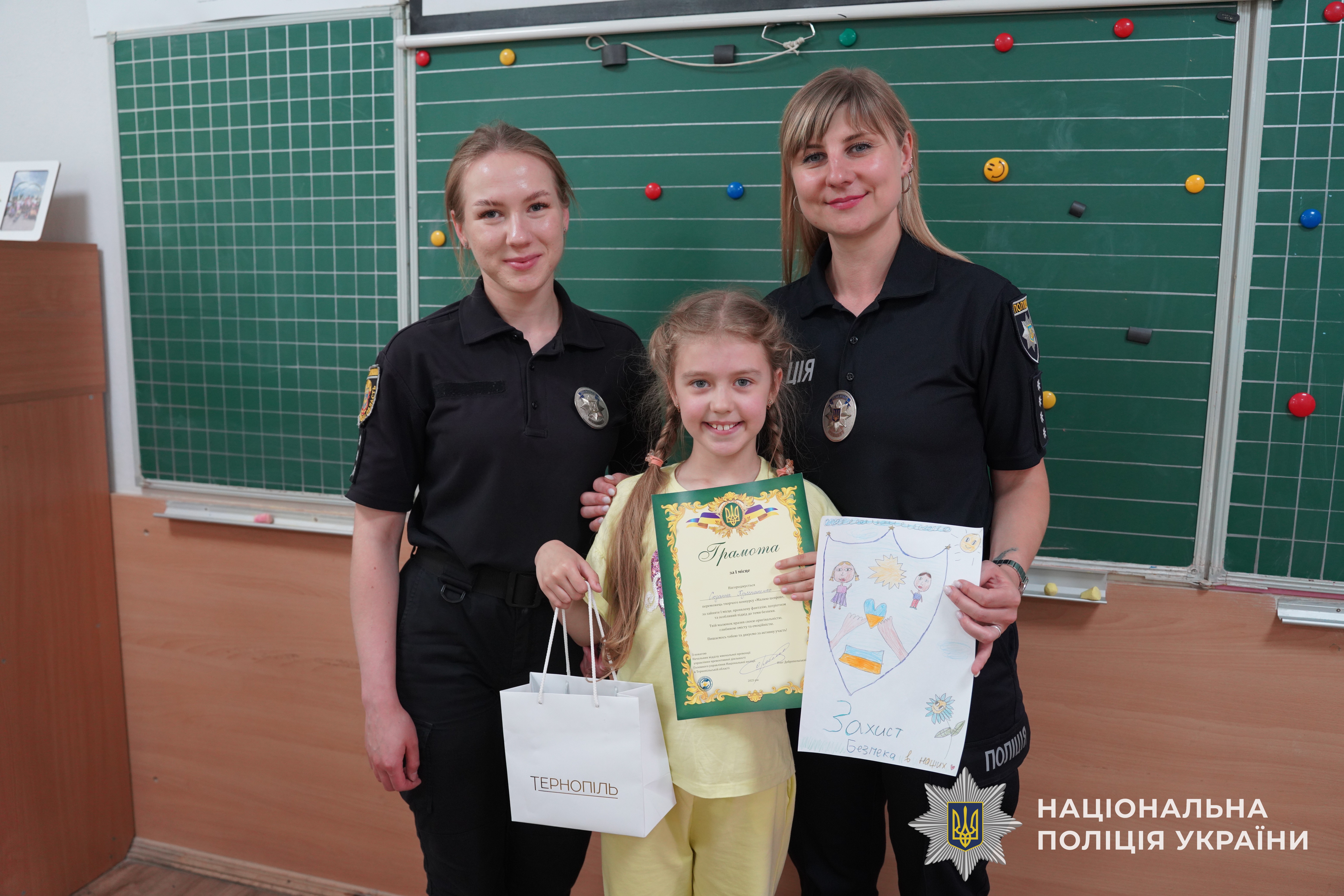 Журі обрало трьох переможців, які отримали пам’ятні подарунки. Втім, без уваги не залишився жоден учасник – усіх дітей поліцейські нагородили за старання та творчий підхід.