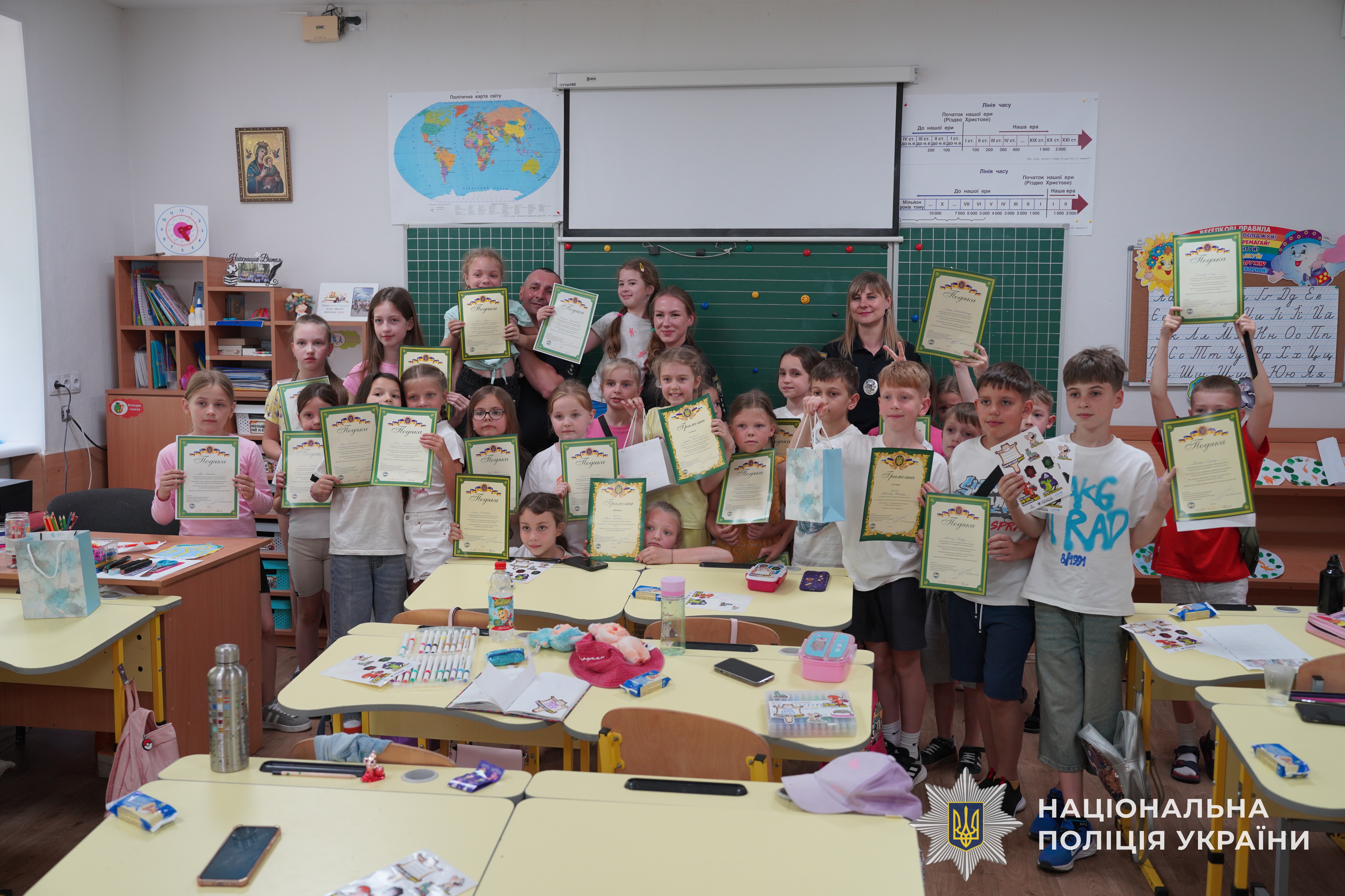 Правоохоронці також нагадали дітям основні правила безпеки під час літніх канікул. Малечі наголосили на необхідності дотримання правил дорожнього руху, безпечної поведінки біля водойм, уникнення спілкування з незнайомцями, а також обережного користування інтернетом.