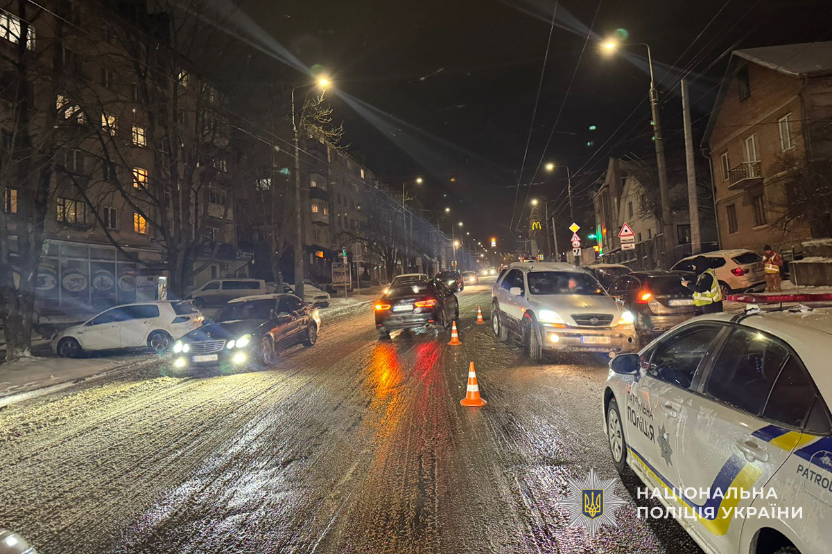Автопригода, в якій зіткнулися три автомобілі, трапилася у Тернополі близько 20:20. На місці події працювала слідчо-оперативна група Тернопільського райуправління поліції. У ході перевірки стало відомо, що водій Kia Sorento, рухаючись вулицею Гетьмана Мазепи, не впорався із керуванням, виїхав на смугу зустрічного руху та допустив зіткнення з автомобілем BMW X3 та Volvo V60. У результаті удару BMW X3 винесло за межі проїзної частини дороги і її кермувальник отримав тілесні ушкодження.