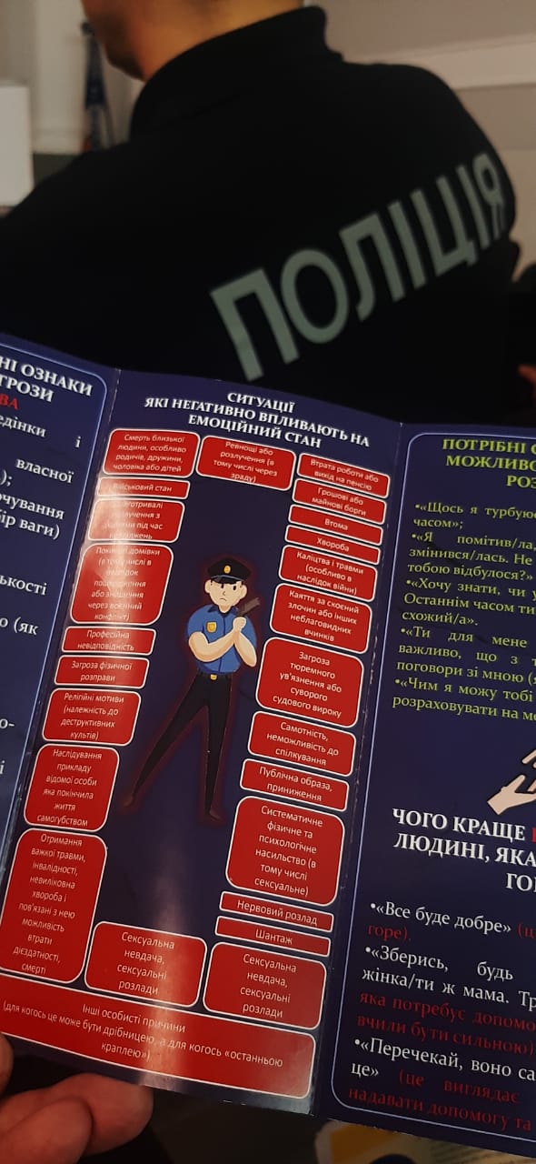 Такі тренінгові заняття систематично проводяться у рамках Всеукраїнської програми ментального здоров’я «Ти як?». Поліціянти під час навчань розглядають життєві ситуації та виробляють уміння збереження самоконтролю в кризових ситуаціях, пов’язаних із загрозами війни, навчаються відновлювати психологічний баланс після емоційного виснаження та надавати першу психологічну підтримку колегам та громадянам.