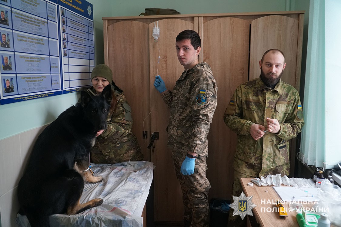 Службових поліцейських собак оглянули працівники Першого військового шпиталю ветеринарної медицини