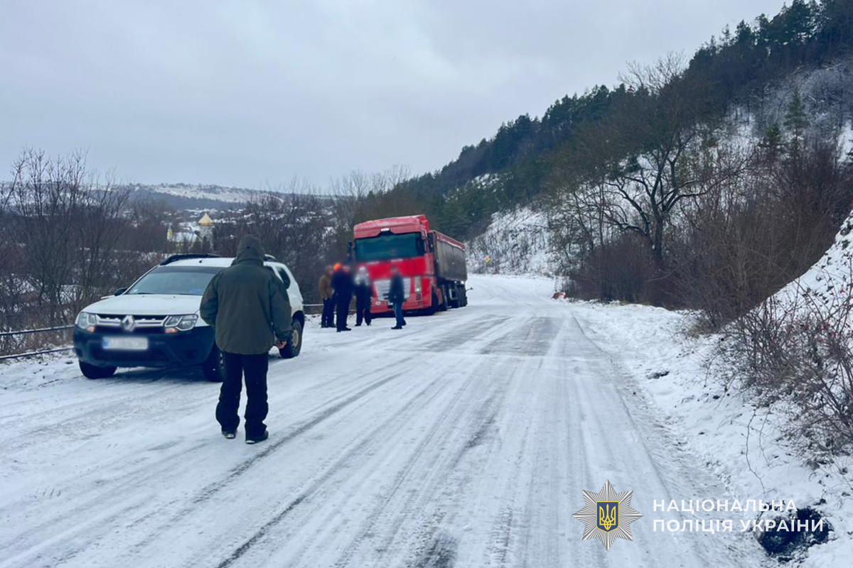 Сніг та ожеледиця: поліцейські Тернопільщини закликають учасників дорожнього руху бути максимально уважними