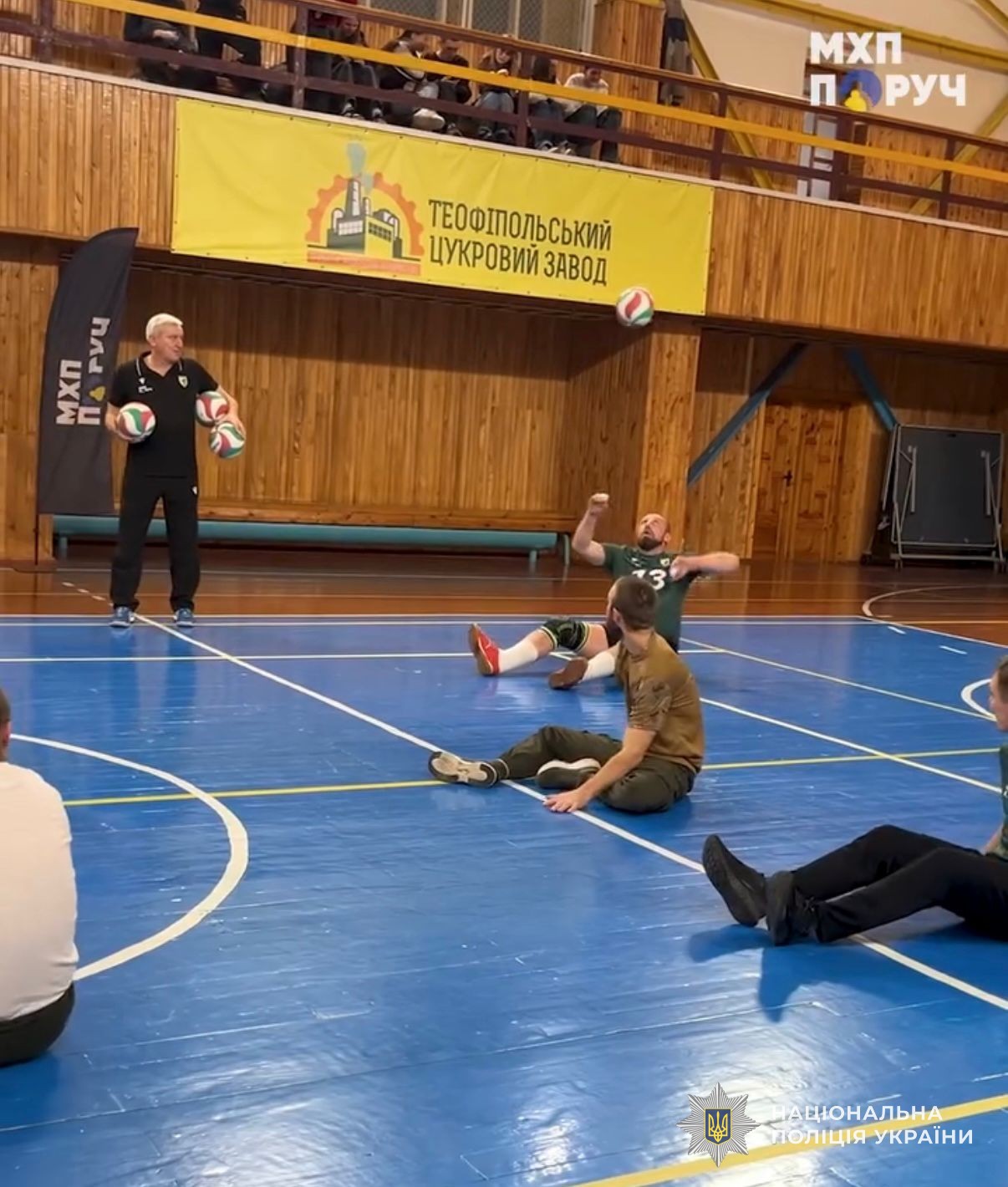 У Теофіполі відбулася спортивна та водночас надзвичайно тепла зустріч: ветеранська команда з волейболу сидячи «Яструби МХП» із Тернополя у складі якої зокрема, були ветерани, діючі працівники поліції Тернопільщини, провела показову гру для місцевих ветеранів та школярів.