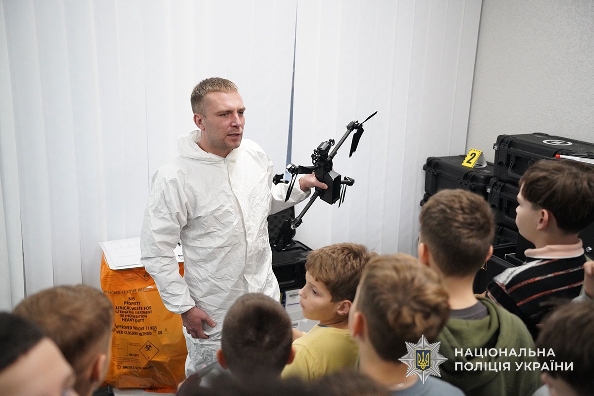 Спеціалісти-криміналісти розповіли, як працюють на місці злочину, показали процес вилучення відбитків пальців, виявлення слідів взуття та рук на різних поверхнях.