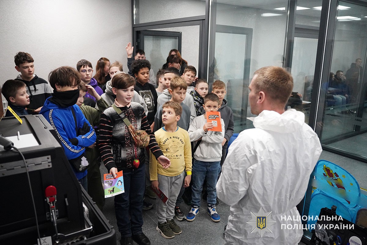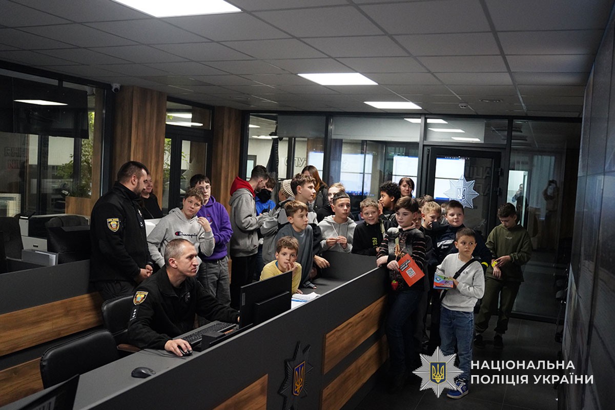 Після цього школярі ознайомилися з роботою різних підрозділів поліції. Їм показали, як оператори спецлінії 102 приймають виклики від громадян, продемонстрували сучасну систему відеонагляду, яка допомагає не лише розкривати злочини, а й розпізнавати обличчя та номерні знаки автомобілів.