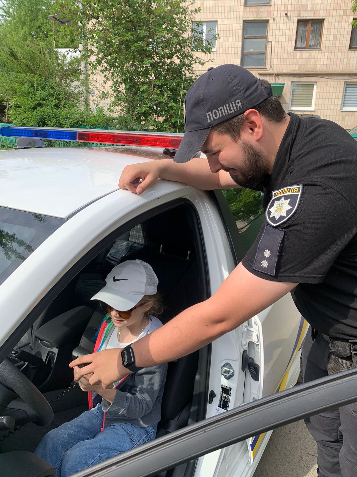 Наприкінці зустрічі вихованці садочку спробували себе в ролі працівників поліції - сиділи за кермом авто, вмикали рацію та проблискові маячки.