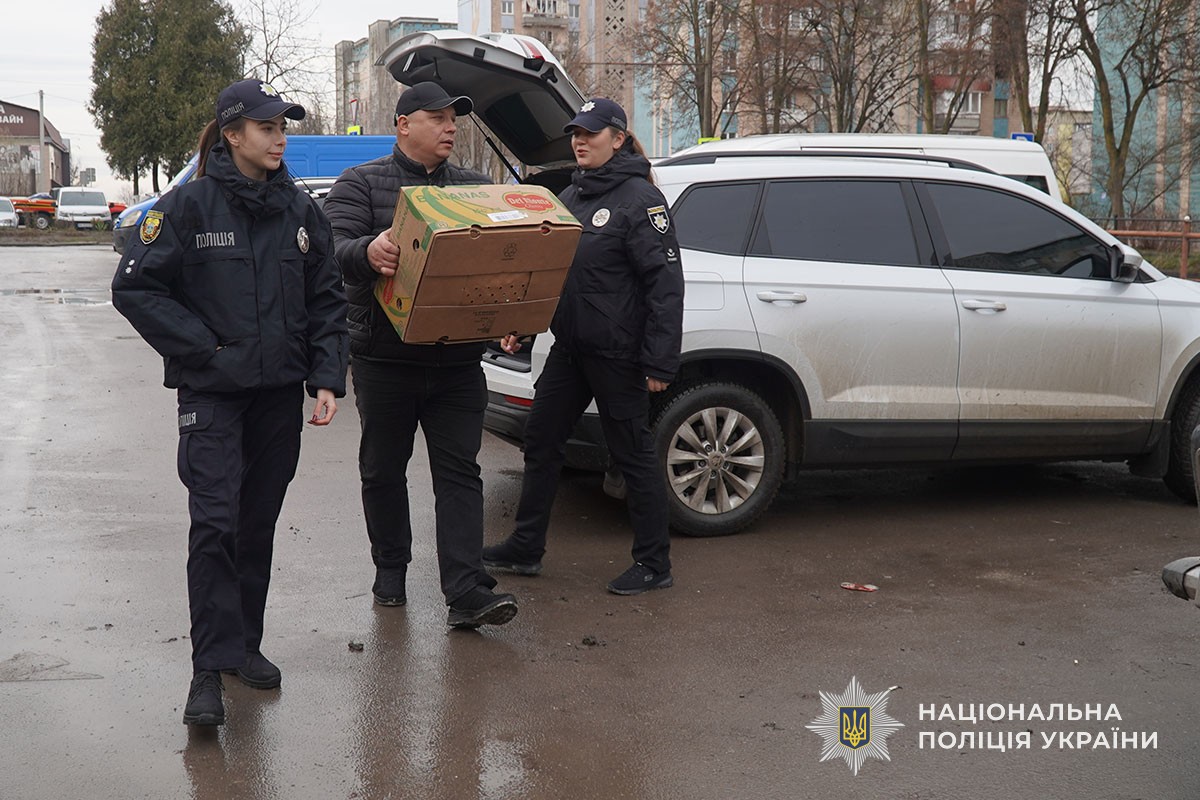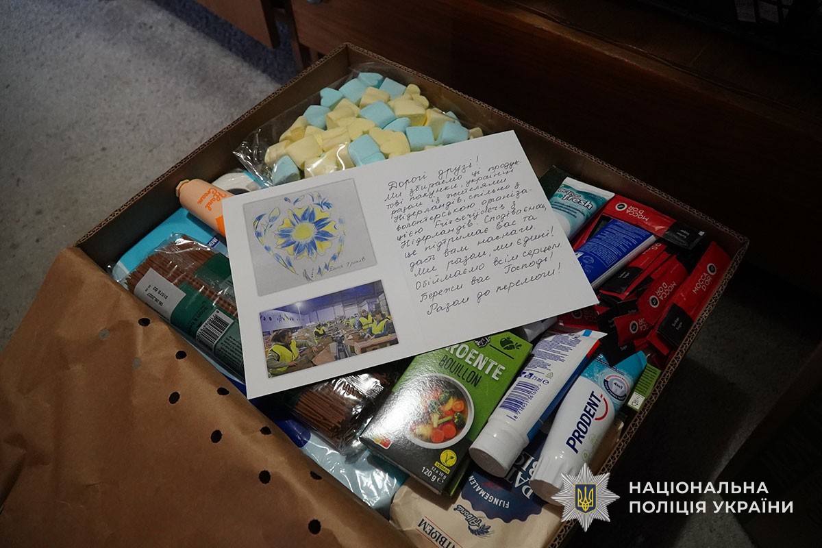 Щоб підтримати колег у цей непростий період, співробітники управління кадрового забезпечення, представниця Департаменту головної інспекції та дотримання прав людини Нацполіції Ірина Ніколаєва за підтримки громадського формування «Капеланський патруль» організували для них продуктові набори та речі першої необхідності.