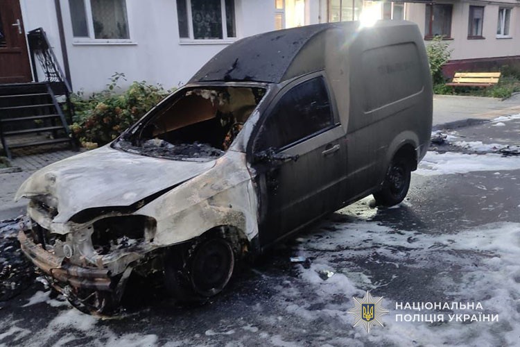 Поліцейські з’ясували, що знищений фургон належить військовому Збройних Сил України, а слідчо-оперативна група вилучила речові докази, які вказали на те, що причиною займання транспортного засобу став навмисний підпал.
