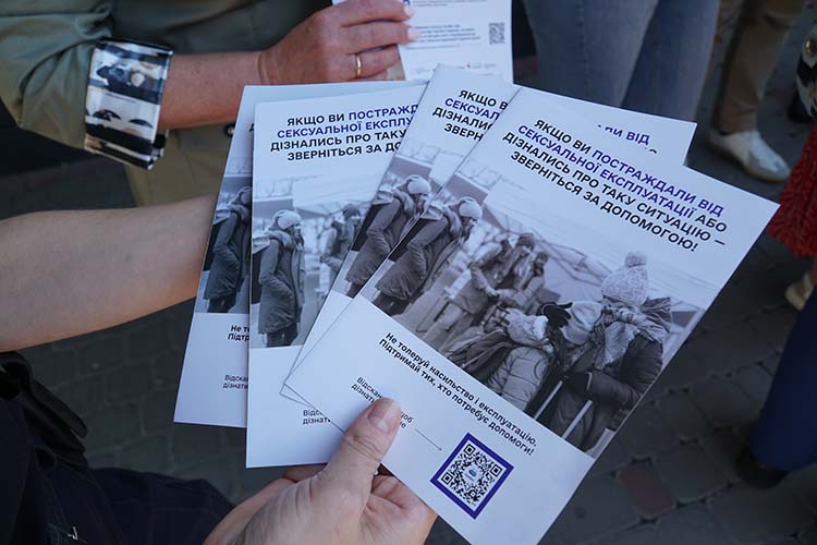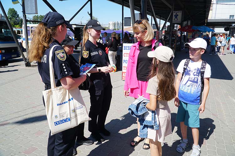 "Сьогодні ми, поліціянти, долучилися до акції, яка відбувається в Тернополі на автовокзалі. Ми розповідаємо людям, як протидіяти даному явищу, куди звертатися за допомогою, якщо люди потрапили в певні обставини. Також ми роздаємо контактні номери телефонів, брошури, блокноти, а для дітей браслетики з номерами телефонів", - розповідає старший інспектор з особливих доручень Управління дотримання прав людини Ірина Ніколаєва.