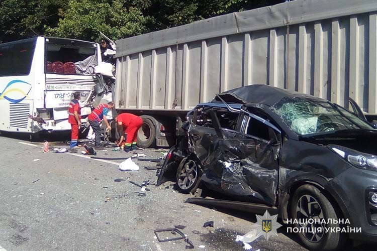 "У цей момент дорогою рухався автопотяг MAN. Його водій не встиг загальмувати й вантажівка врізалася в Kia Sportage, - розповідає учасник слідчо-оперативної групи. - Позашляховик за інерцією вилітає на смугу зустрічного руху та врізається у вантажівку Citroën, а автопоїзд, своєю чергою, протаранює ще й фуру та автобус".