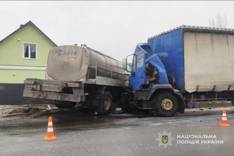 За попередньою інформацією, у вантажівки марки "Meрседес" раптово тріснуло колесо і його викинуло на зустрічну смугу, де проїжджало інше вантажне авто. Після зіткнення з вантажівкою молоковоз з'їхав в огорожу приватного будинку.