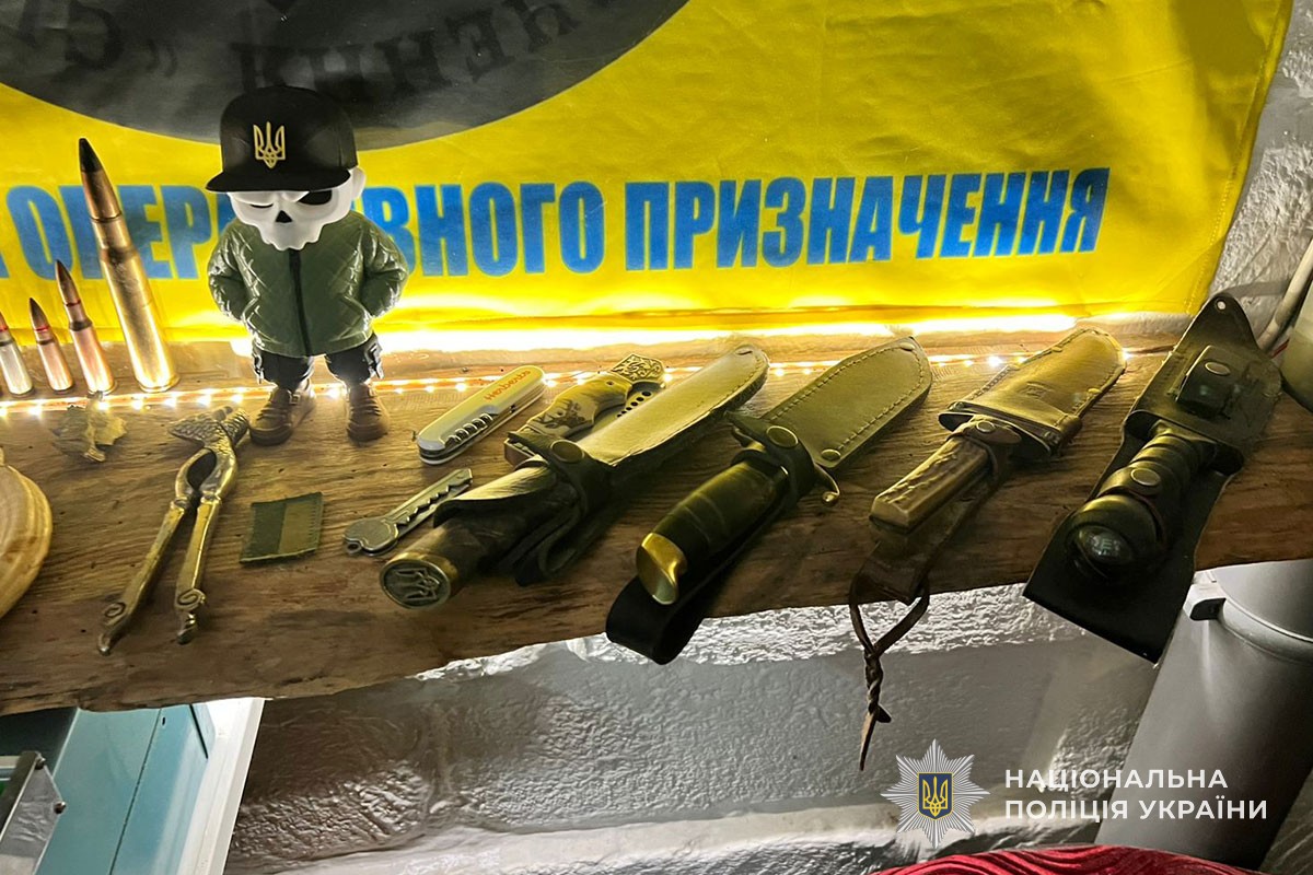 Під час огляду гаражного приміщення поліцейські виявили заборонені предмети, зокрема, патрони, порох, ножі а також суху подрібнену речовину, схожу на наркотичну. Речові докази вилучено та направлено на експертизу.