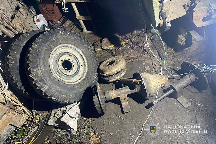 До поліцейського офіцера Почаївської громади Кременецького районного відділу поліції надійшло повідомлення від 60-річної жительки одного із сіл про те, що невідома особа викрала з підсобного приміщення її господарства два колеса та задній міст до саморобного трактора. Потерпіла не могла вказати, коли саме сталася крадіжка. Будівля, де знаходився транспортний засіб, не була зачинена і вона туди тривалий час не навідувалися. Коли ж виявила, що хтось погосподарював у гаражі,– зателефонувала до поліцейського офіцера своєї громади. Збитки жінка оцінила у 7 тисяч гривень.