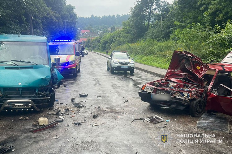 За попередніми даними, 19-річна місцева жителька, керуючи автомобілем «ВАЗ-2109», виїхала на смугу зустрічного руху та зіткнулася з мікроавтобусом «Mercedes-Benz 212 D».