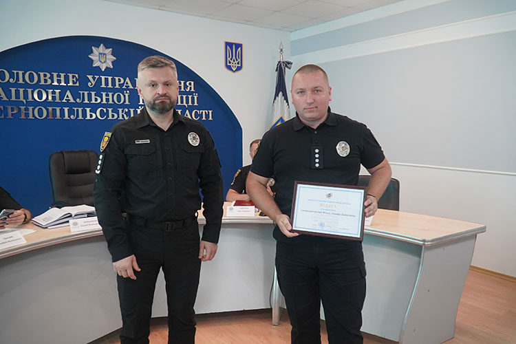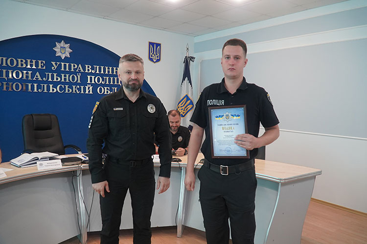 Начальник ГУНП в Тернопільській області Сергій Зюбаненко вручив нагороди співробітникам поліції, котрі продемонстрували особисту ініціативність та високий професіоналізм при виконанні службових обов’язків.