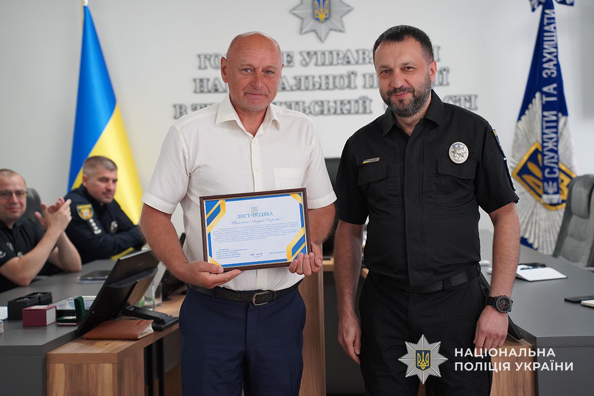 Тимчасовий виконувач обов'язків начальника ГУНП в Тернопільській області Андрій Ткачик від імені керівника поліції області Сергія Зюбаненка подякував слідчим за сумлінну службу та вручив відомчі відзнаки та спеціальні звання.