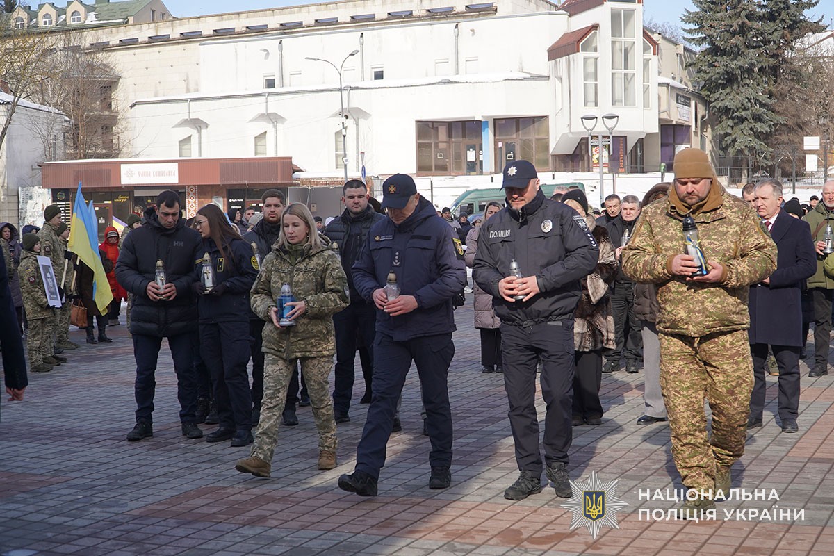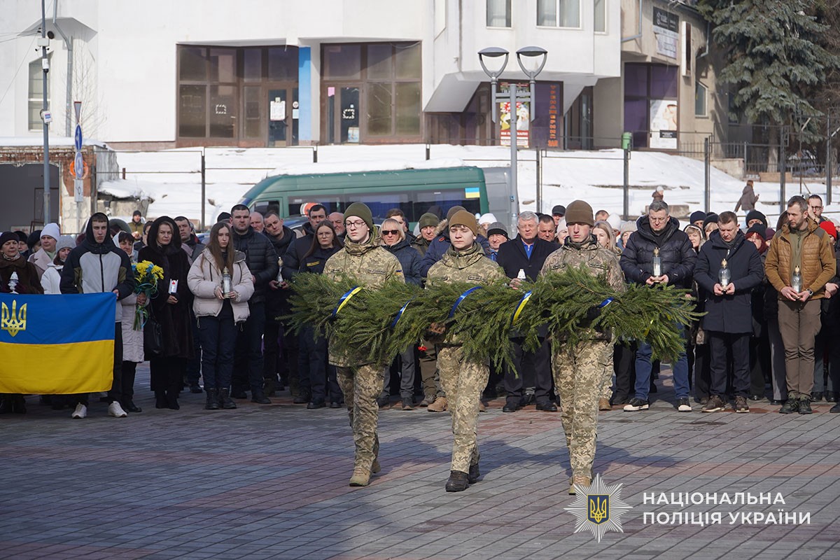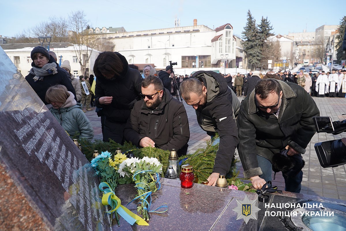 Тернополяни, представники влади, поліцейські, військовослужбовці та рятувальники хвилиною мовчання та спільною молитвою вшанували пам’ять Героїв і всіх захисників України, які віддали своє життя за європейське майбутнє нашої держави.