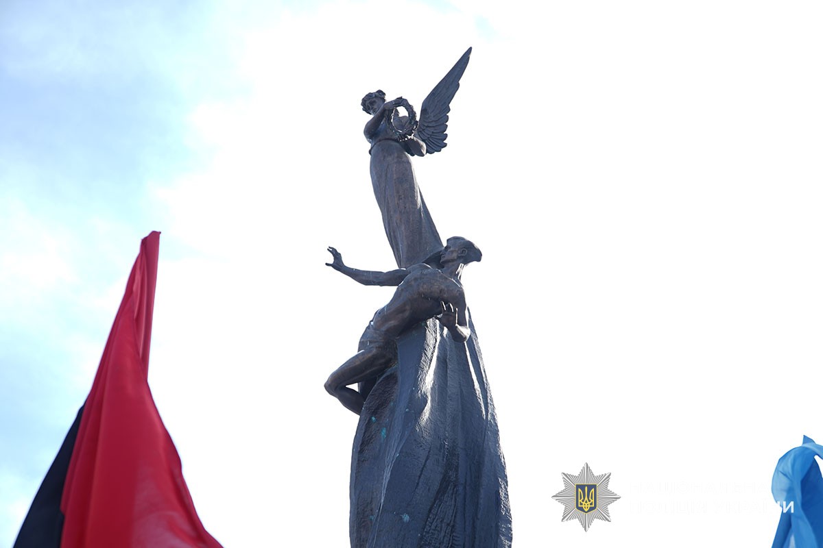 Сьогодні в Тернополі на площі Героїв Євромайдану біля пам'ятного знаку загиблим відбувся захід у якому взяли участь також представники поліції Тернопільшини.