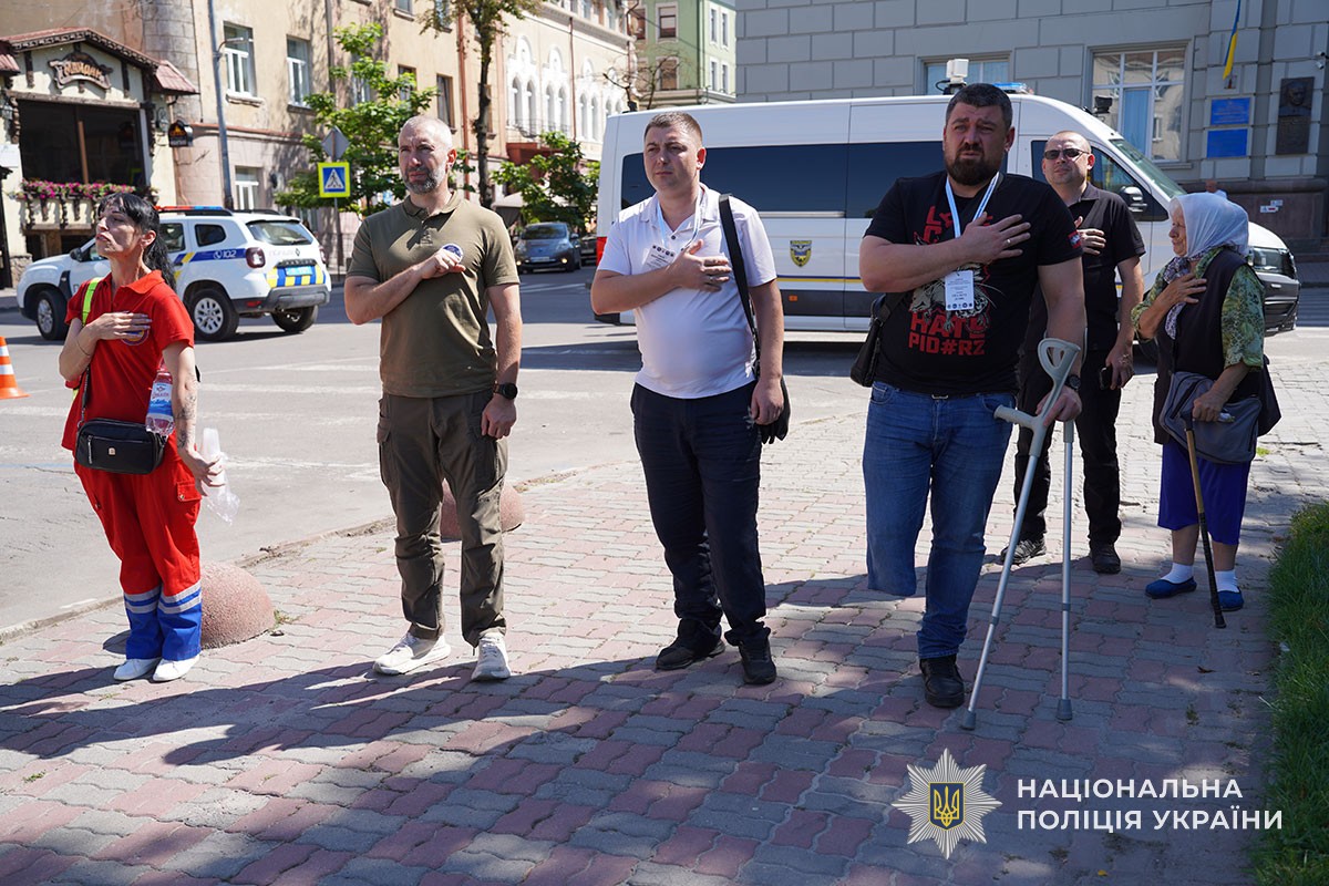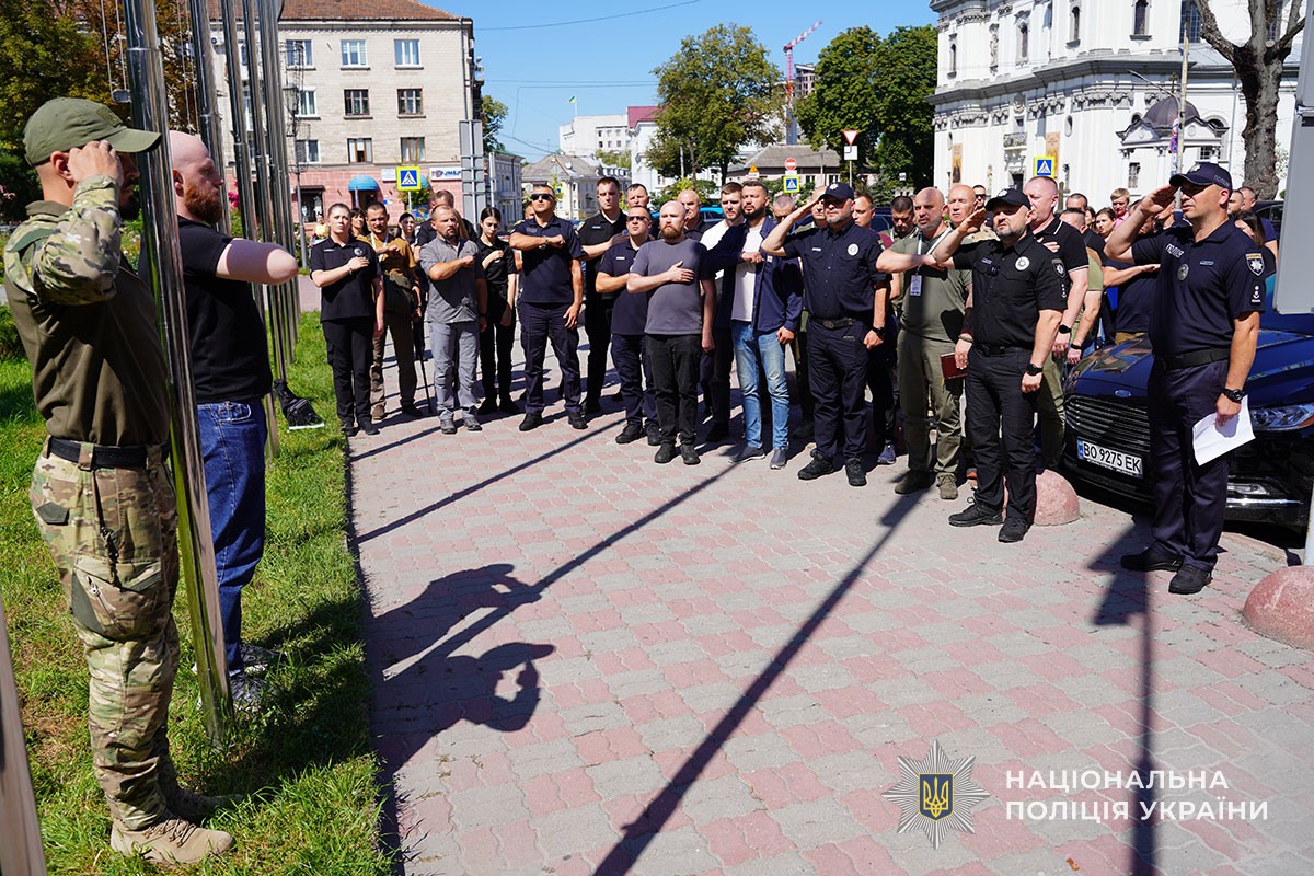 «Це не просто прапор, це той стяг, з яким ви йшли в бій. Слідчі, оперативники, працівники превенції, ви разом із Силами оборони виконуєте бойові завдання в найгарячіших точках фронту, захищаєте нашу державність», — сказав начальник ГУНП в Тернопільській області Сергій Зюбаненко.