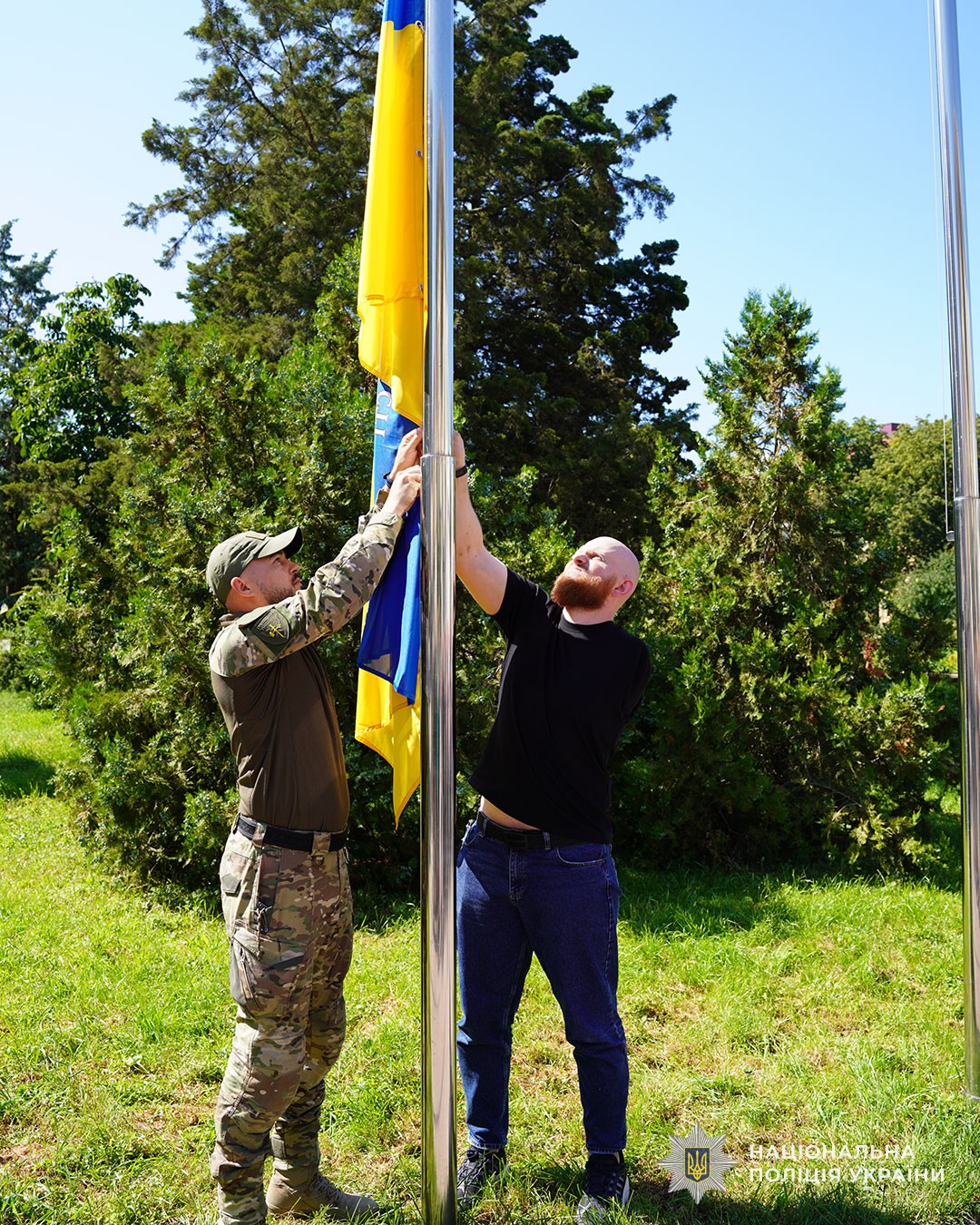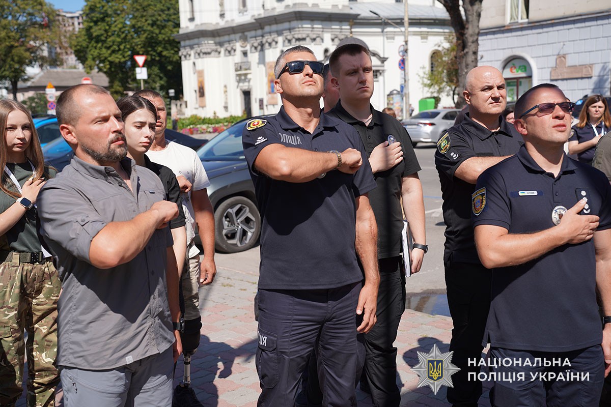 Честь підняти стяг бойового підрозділу поліції мали радник Міністра внутрішніх справ з питань ветеранської політики, Герой України Дмитро Фінашин та боєць батальйону Олексій Трачук.