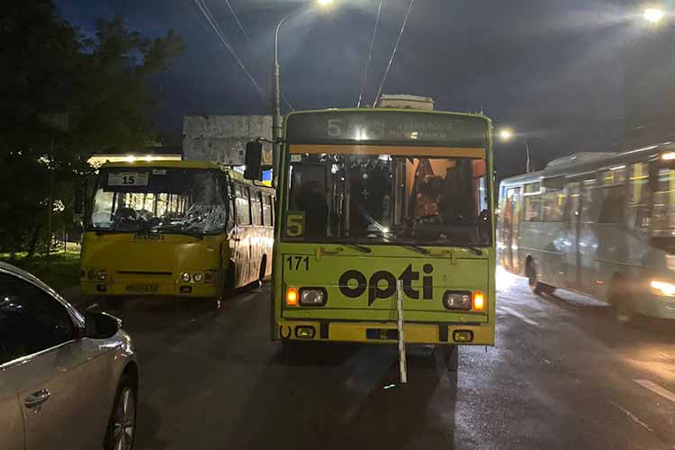 Виїхавши на місце події, поліцейські встановили, що водій маршрутного таксі допустив зіткнення із тролейбусом, який стояв у заторі в попутному напрямку.