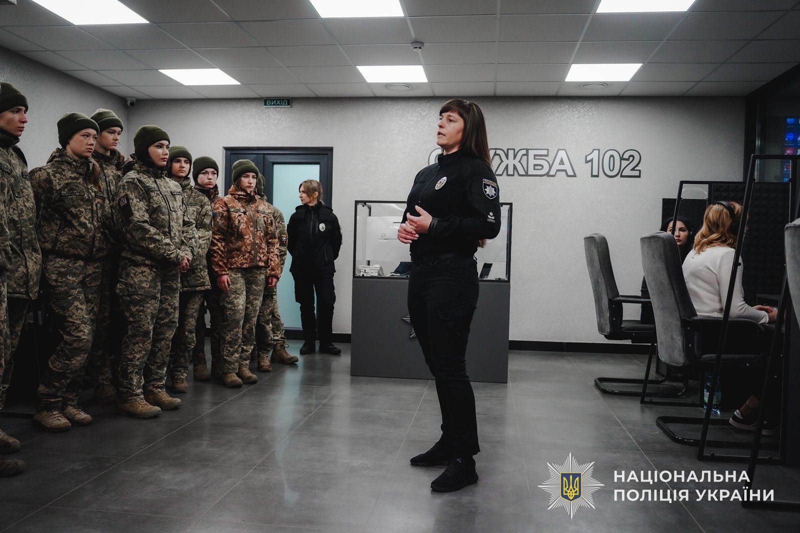 На лінії «102» кадетам показали, як диспетчери фіксують звернення громадян, оперативно визначають пріоритетність подій і передають інформацію патрулям.