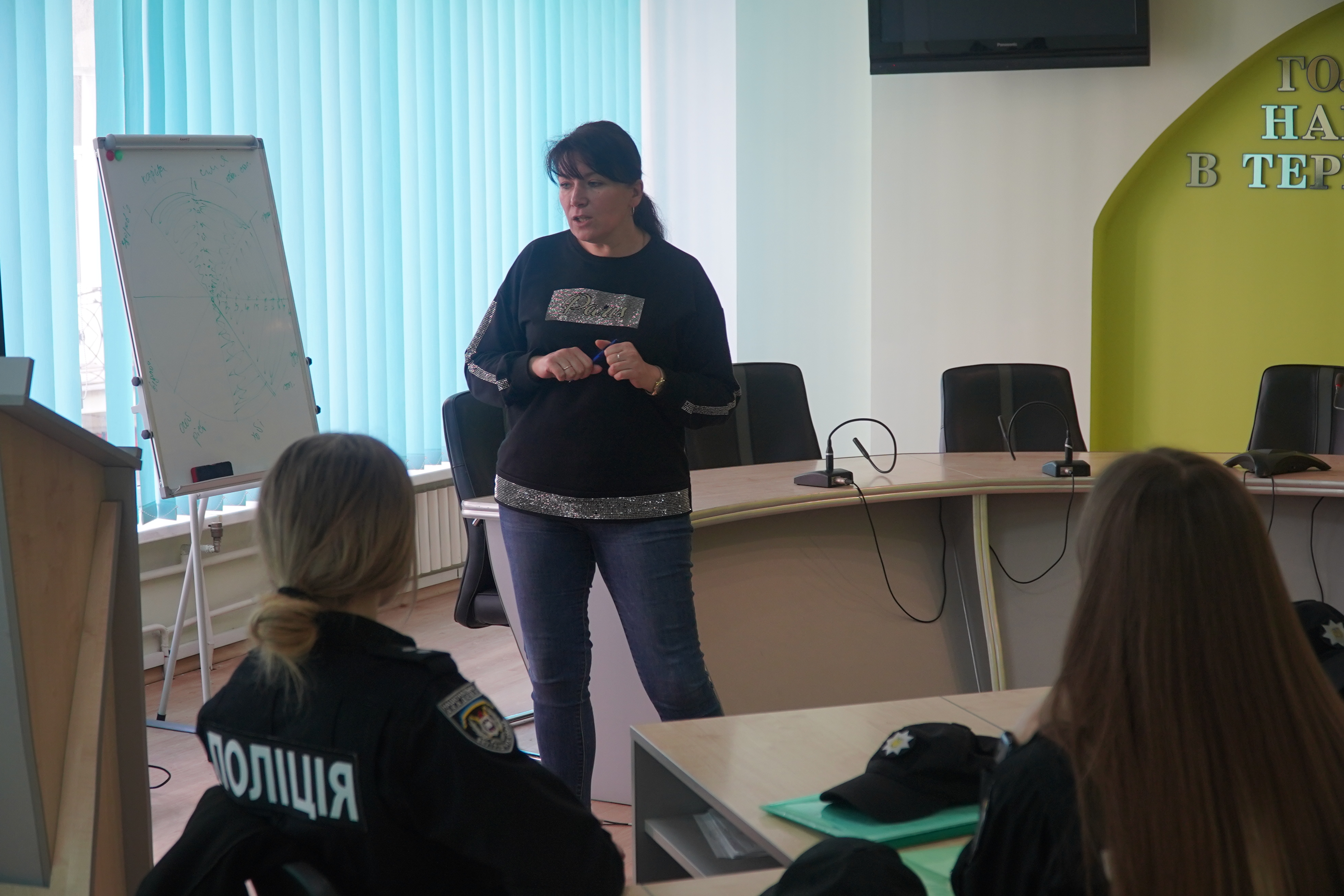 Поліцейські психологи визначили у молодих фахівців ступінь готовності до служби. Під час спілкування вони аналізували та вивчали ндивідуальні особливості та можливості новоприбулих, розвиток їх психоемоційних та вольових якостей, наголосили на дотриманні особистої безпеки, законності у роботі. Також пропрацювали основні техніки спрямовані на формування у сучасного поліцейського навиків надання первинної психологічної допомоги і психологічної підтримки громадян у критичних ситуаціях та в умовах війни.