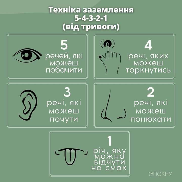 Коли емоції переповнюють і ви почуваєтесь розгублено, відчуваєте сильну тривогу - на допомогу прийдуть техніки заземлення. Для цього назвіть, відчуйте чи опишіть словами: