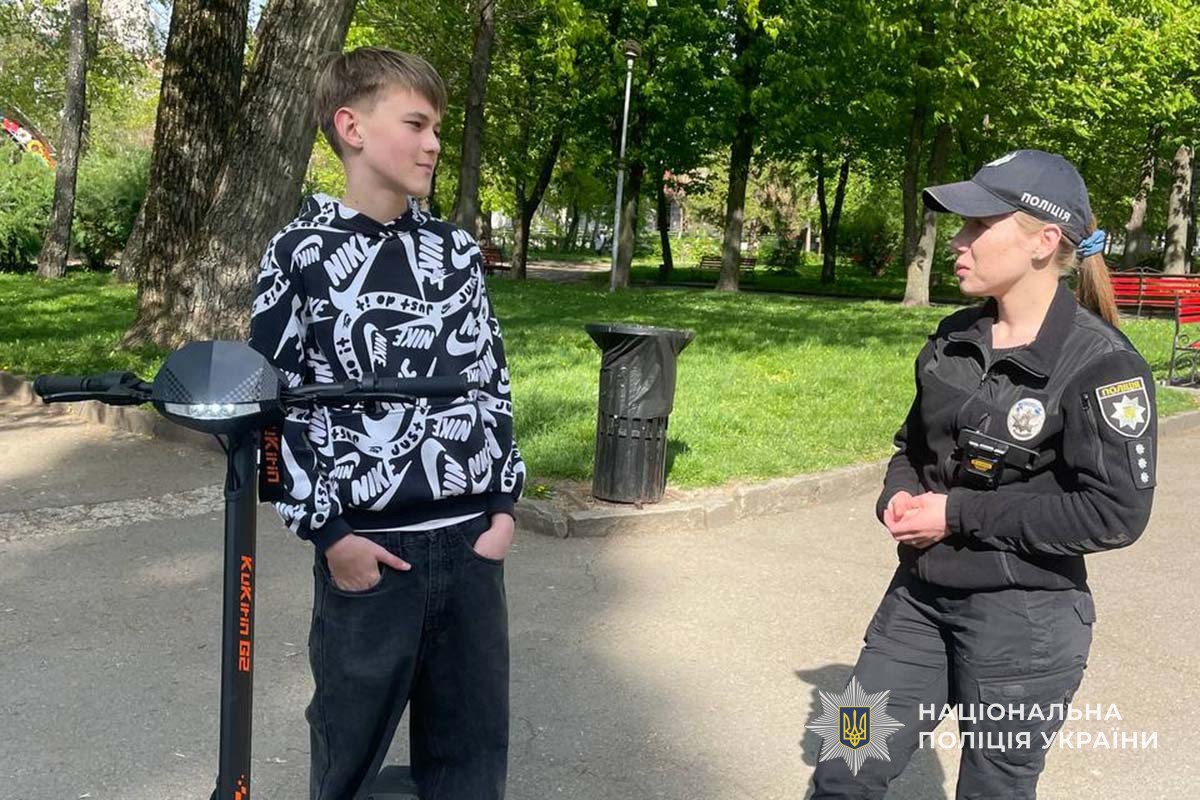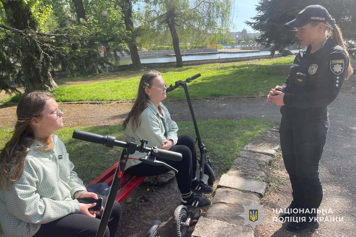 Поліцейські звертали увагу підлітків на важливості використання захисного спорядження, справності велосипедів, а також роз’яснювали, де саме дозволено пересуватися на двоколісному транспорті.
