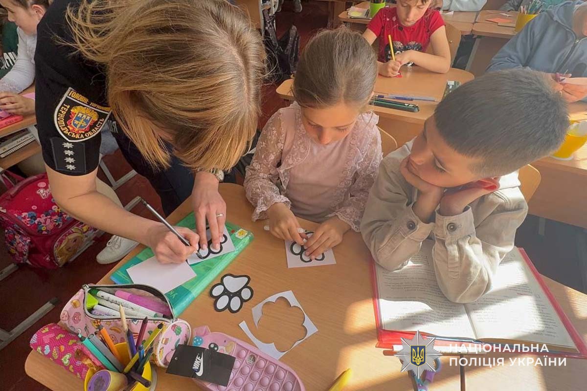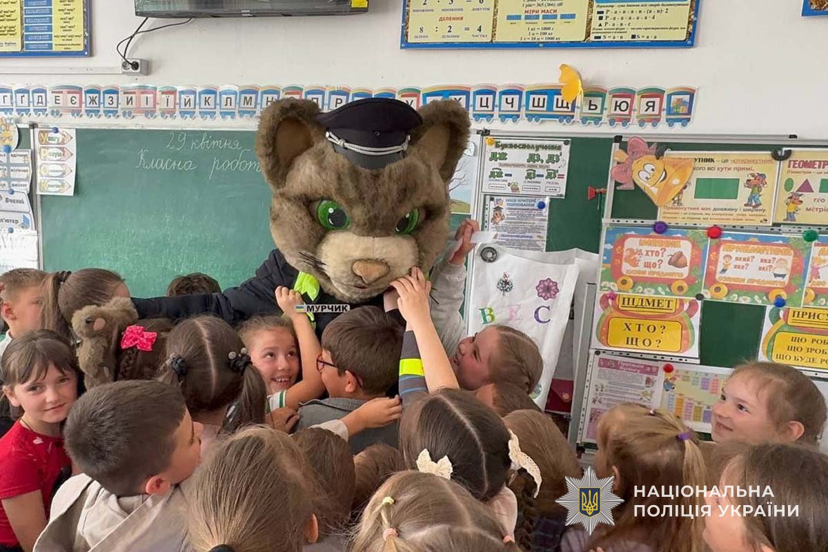 До заняття долучився й спеціальний гість – котик Мурчик, помічник юнацько-патріотичного гуртка «Юні правознавці Кременеччини». Разом з ним школярі активно брали участь в інтерактивних іграх та спілкувалися з поліцейськими.