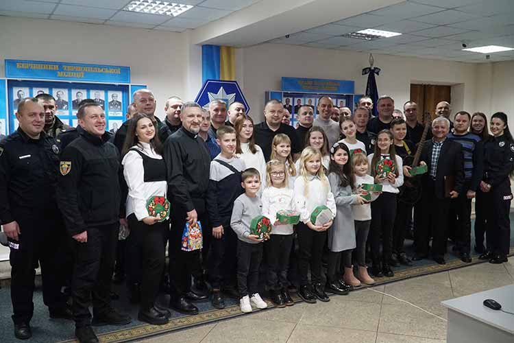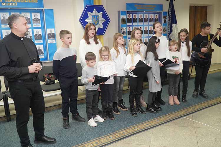 Дванадцятеро дітей разом з пастором церкви Ісуса Христа Ігорем сьогодні завітали до Головного управління Національної поліції Тернопільщини, аби заколядувати та побажати правоохоронцям доброї служби у новому році.