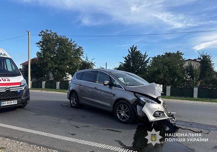 Близько 17:00 аварія сталася на автодорозі в межах населеного пункту Великий Ходачків Тернопільського району. Водій автомобіля Ford C-Max виїхав на смугу зустрічного руху та зіткнувся з авто Citroen Aircross. У результаті тілесні ушкодження отримали водійка Citroen Aircross - 20-річна жителька Тернополя, та пасажирка Ford C-Max - 65-річна мешканка Дніпра.