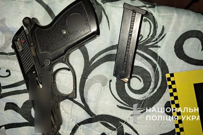 Поліцейські вилучили у чоловіка пістолет та встановлюють його походження.