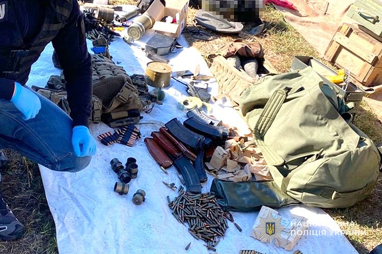 Оперативники вилучили два автомати АК-74, постріл до протитанкового гранатомета РПГ-7, мінометну міну калібру 120 мм, підствольний гранатомет, 29 ручних бойових гранат із запалами, 17 порохових зарядів до мінометних мін, вибухові речовини, димові шашки та майже 4 тисячі набоїв різного калібру.