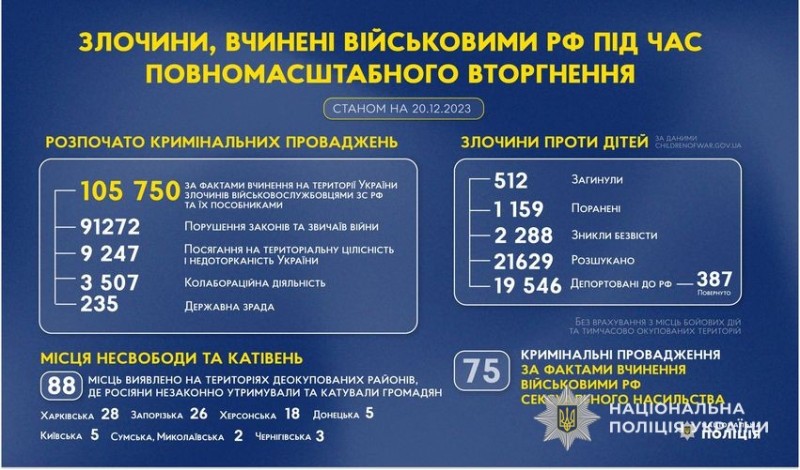 Злочини, вчинені військовими рф під час повномасштабного вторгнення в Україну (станом на 20.12.2023)